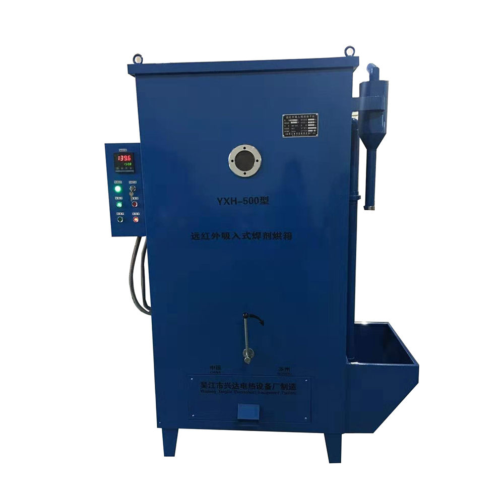 采用倒入式的加料方式,將烘干機頂門打開,即可加入焊劑,簡便實用,價廉物美。遠紅外不銹鋼電熱元件均勻布置于烘干室內,焊劑受熱均勻,設有自動控溫裝置,控溫精度高。